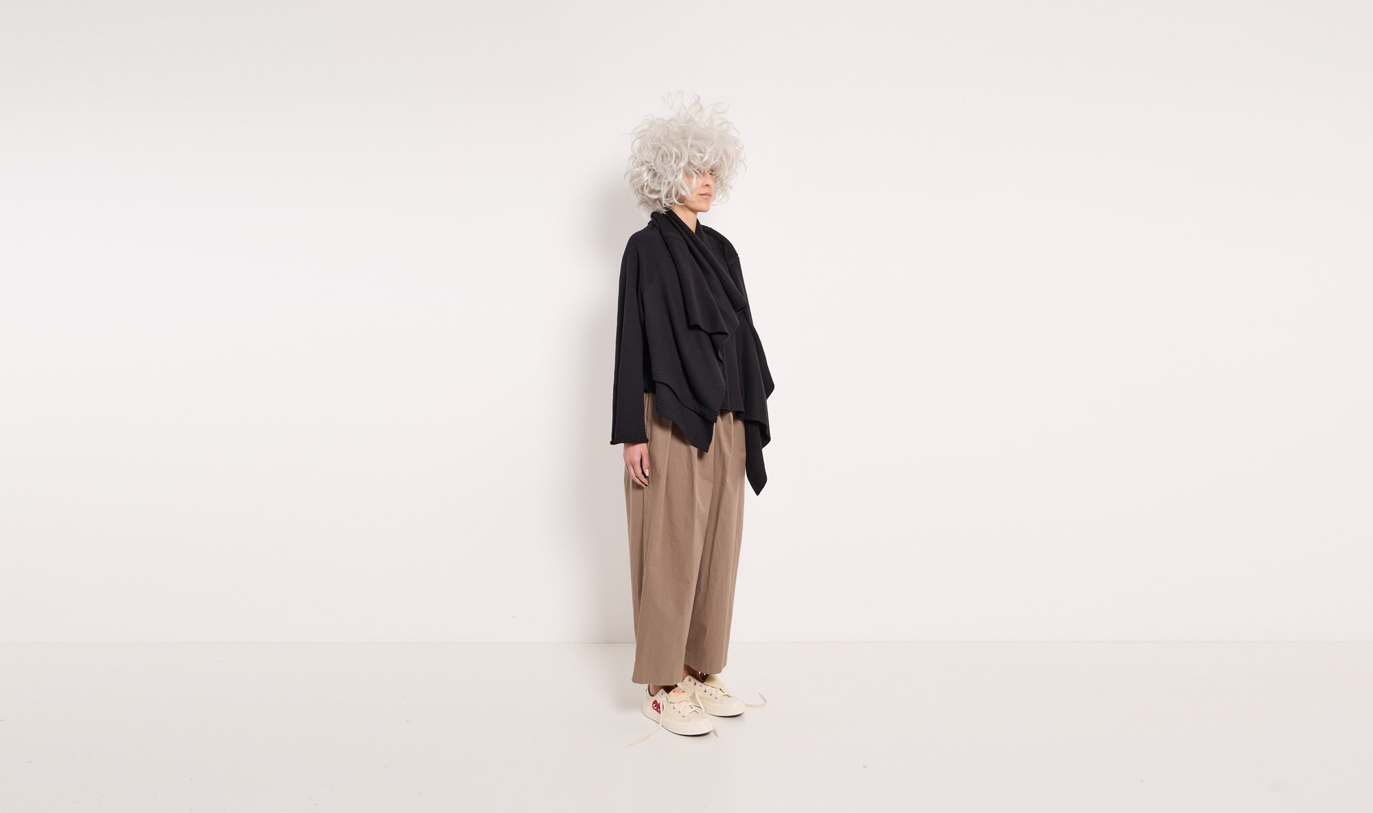 cardigan nero, in cotone, aperto, collo sciallato, maniche lunghe