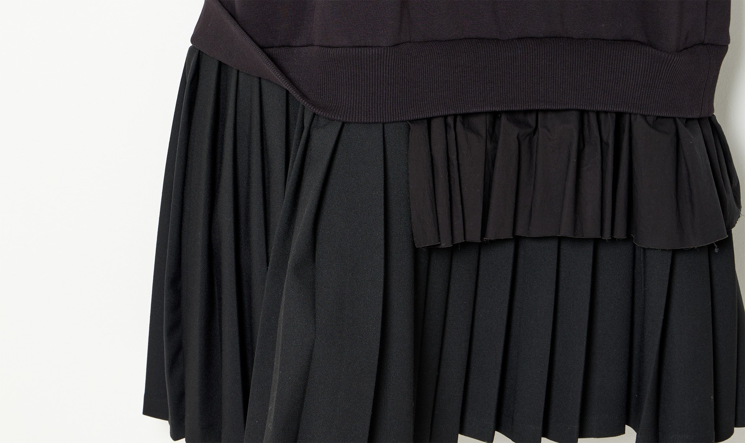 vestito nero, misto cotone e poliestere, girocollo, felpa lunga, pieghe asimmetriche, senza tasche
