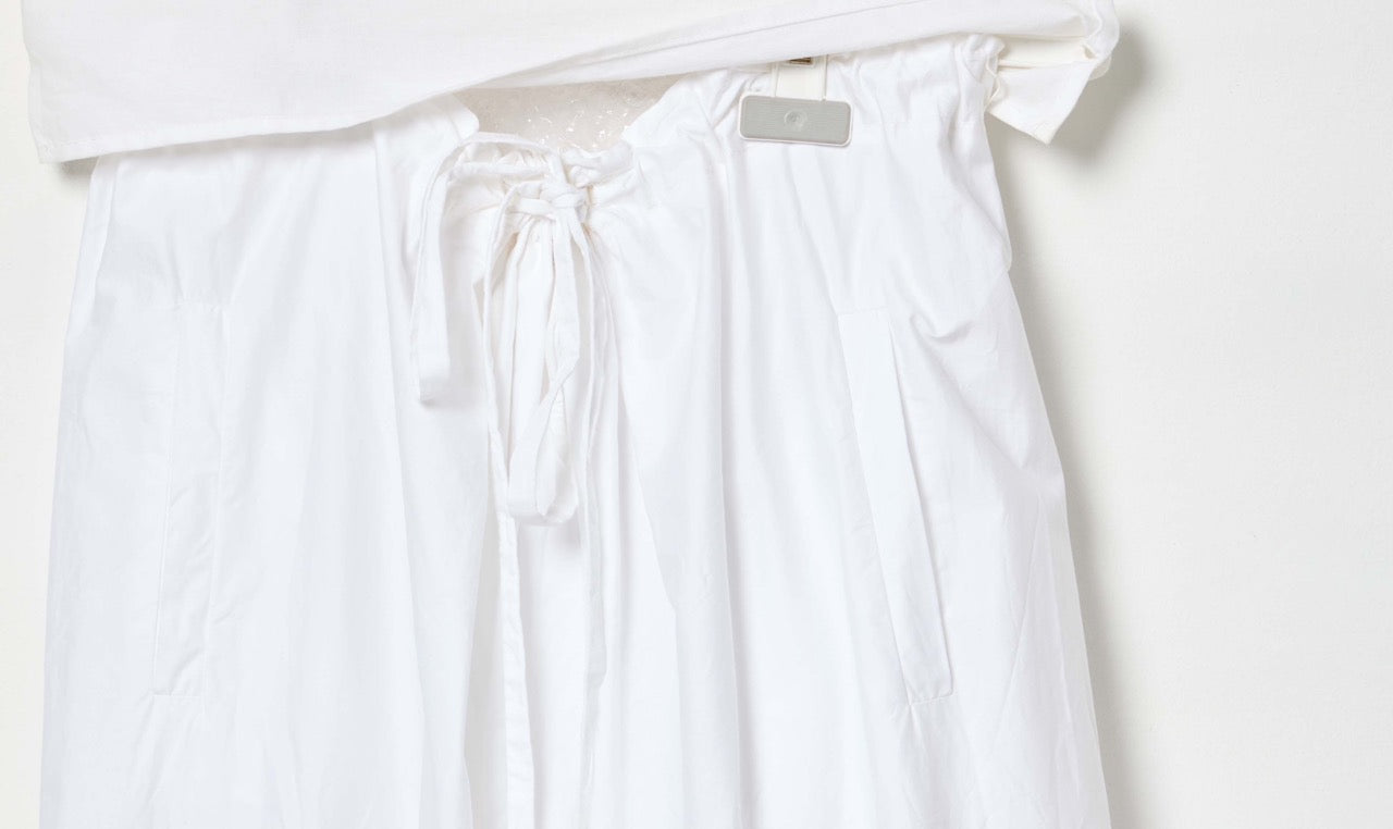 pantalone bianco, cotone, coulisse, tasche laterali, gamba larga, piega al fondo cucita, questi pantaloni vestono la taglia 44/46 IT