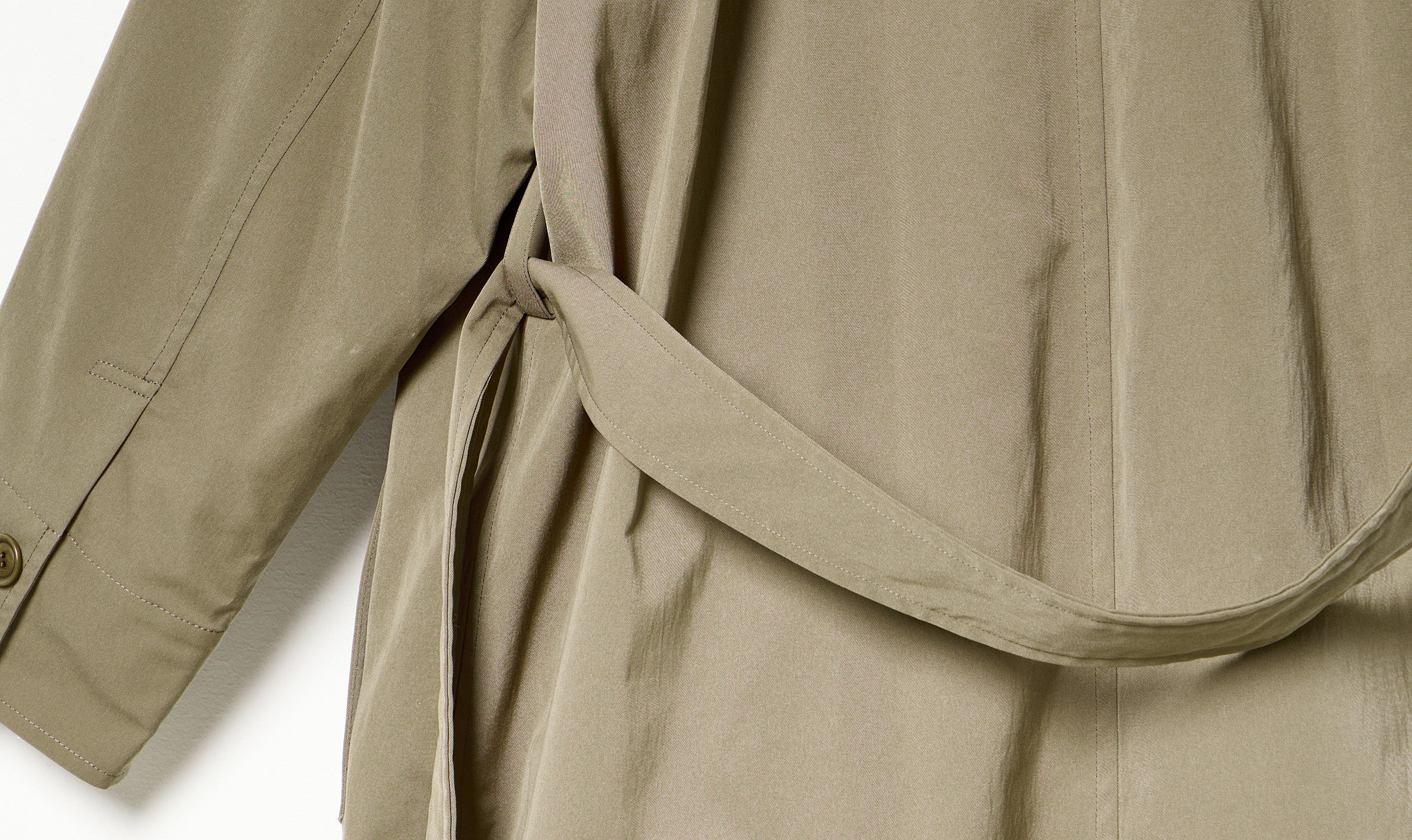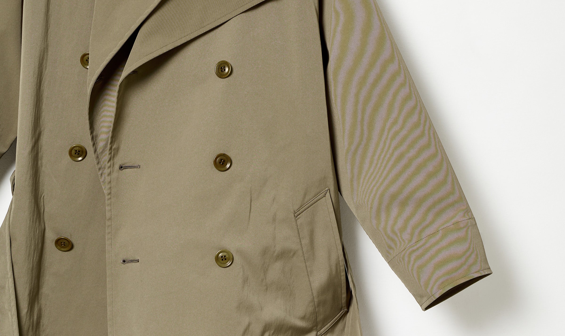 beige technical long deconstructed double-breasted coat