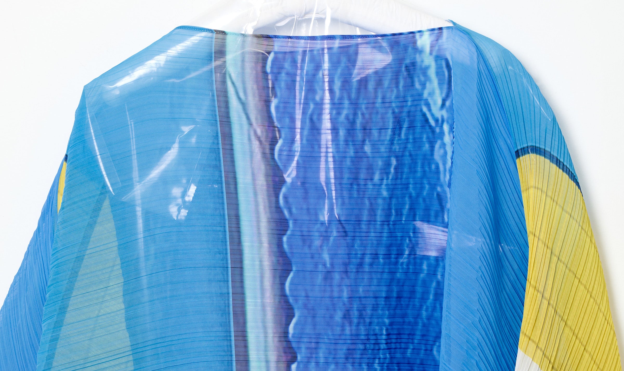 blue/yellow print pleats please shawl