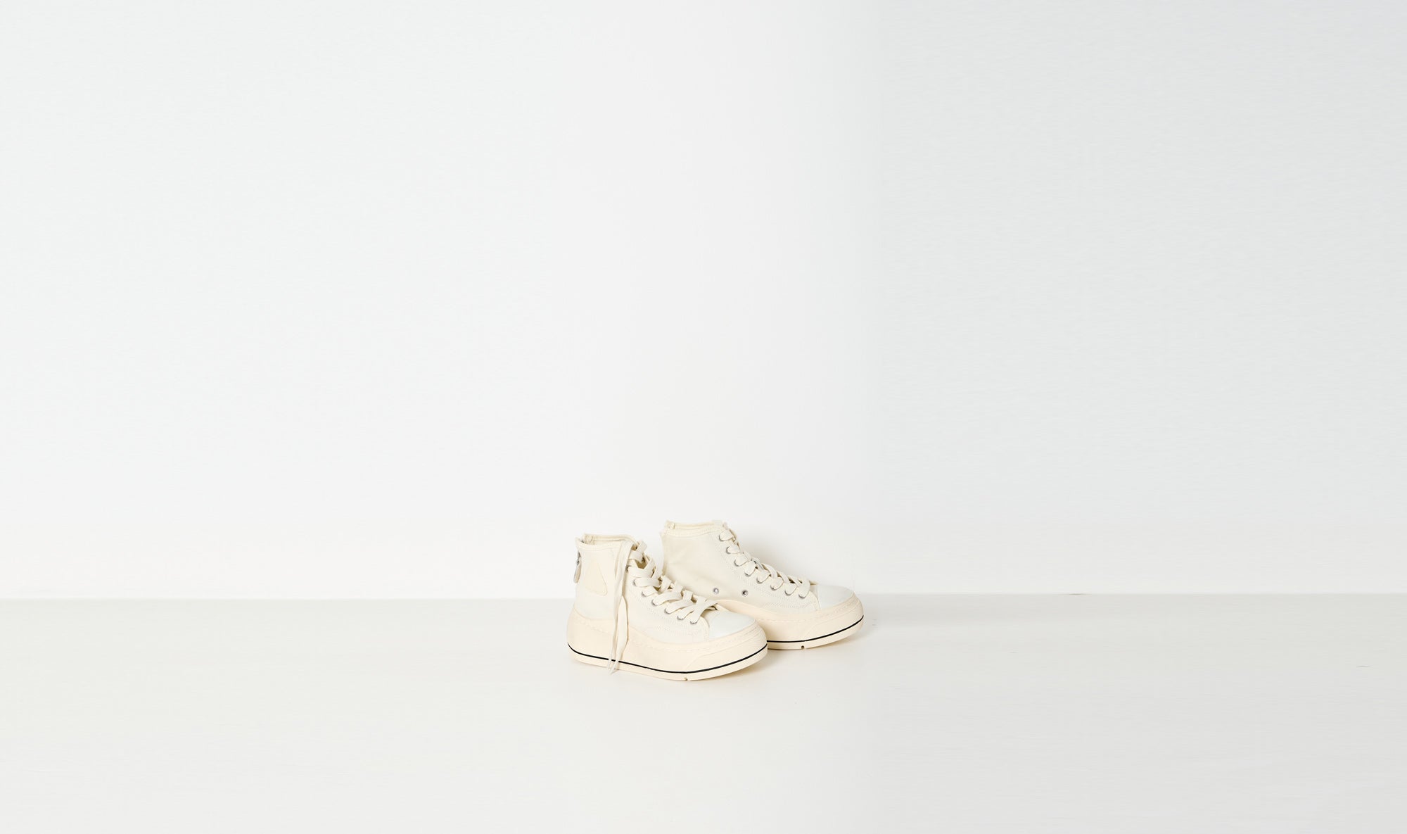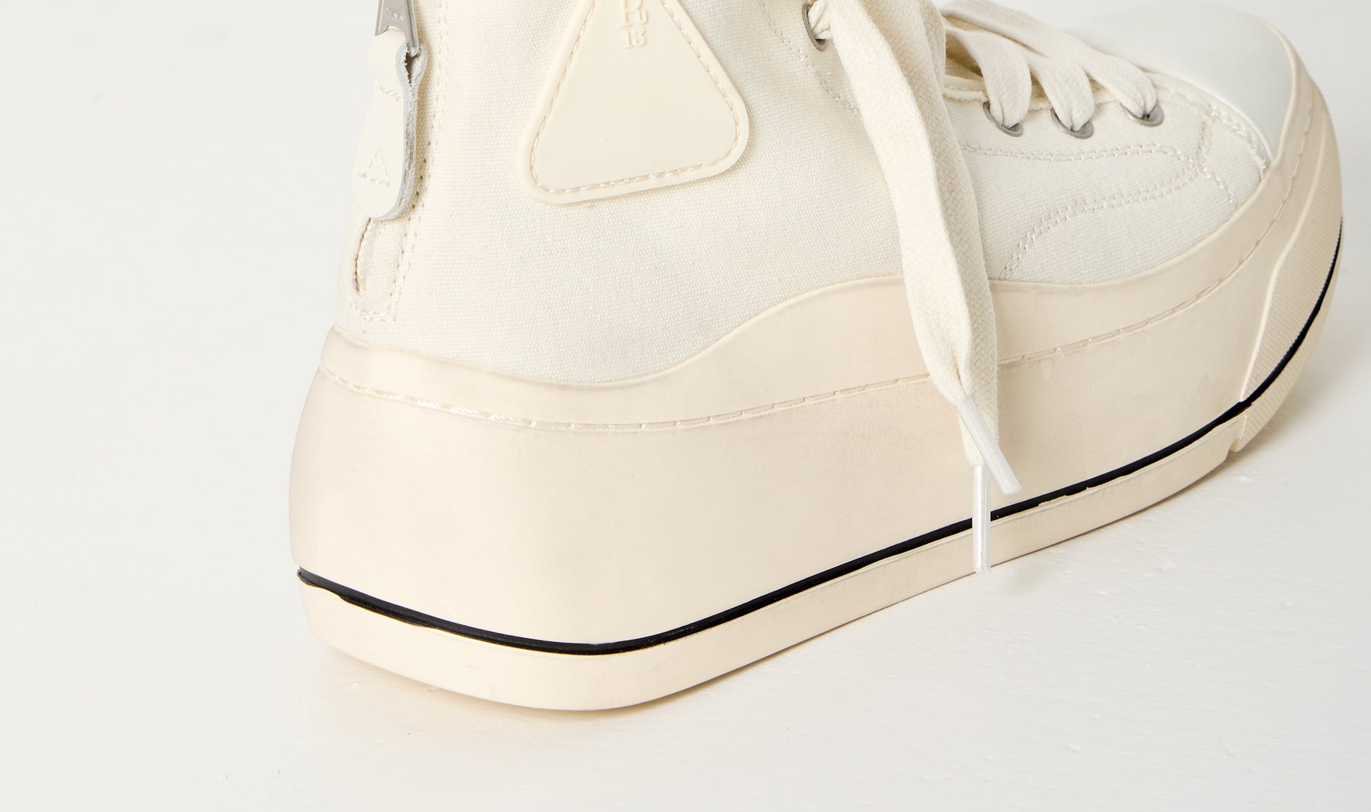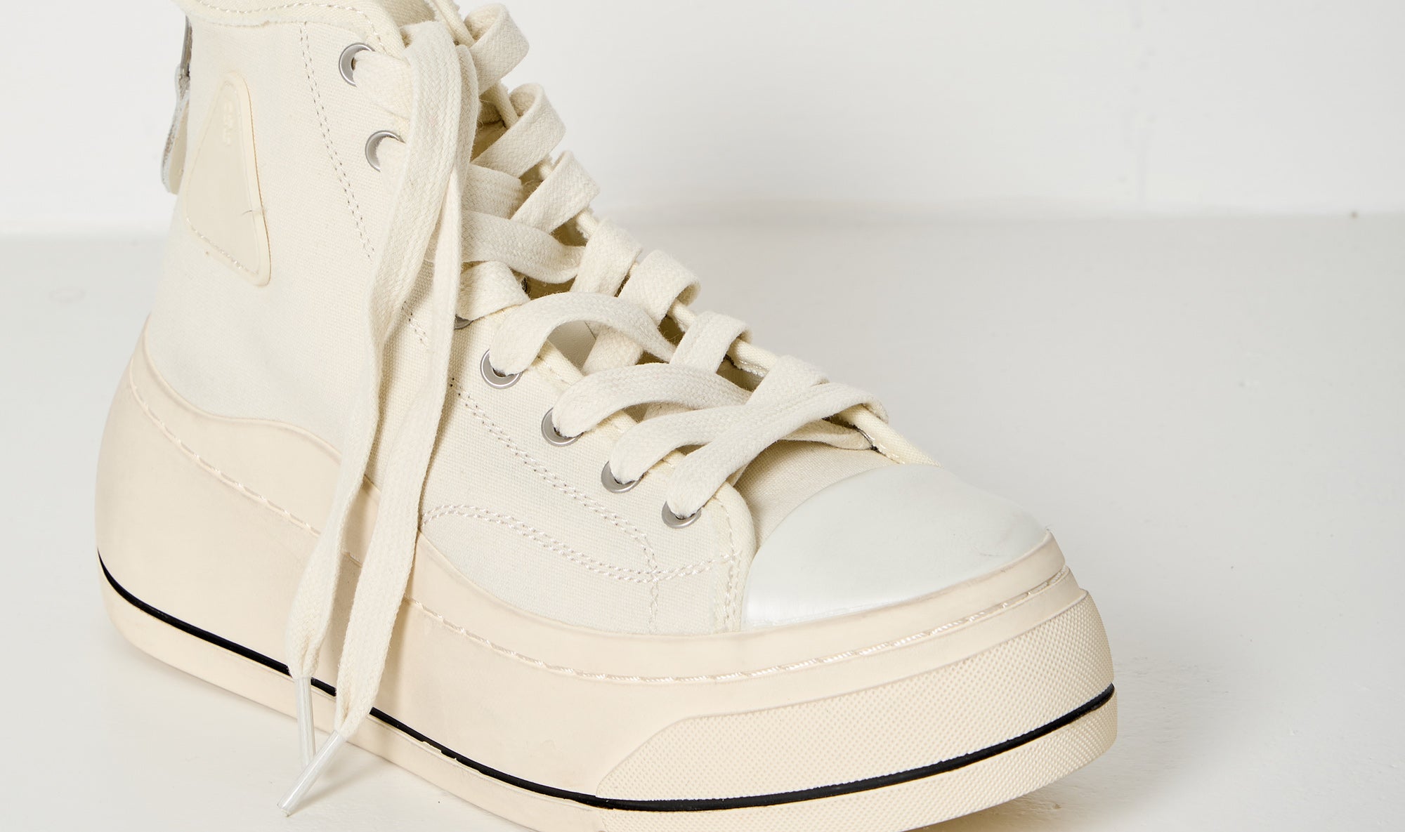 classic canvas sneakers, cream, contrasting color high sole, lace-up fastening, hand stitched platform, toe cap