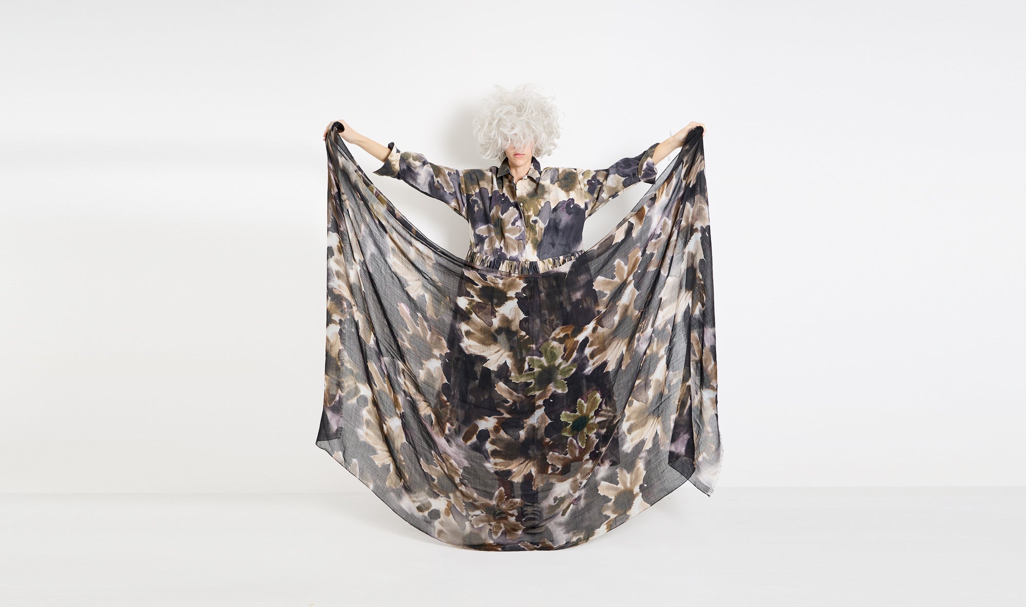 grey green flowers pattern outfit