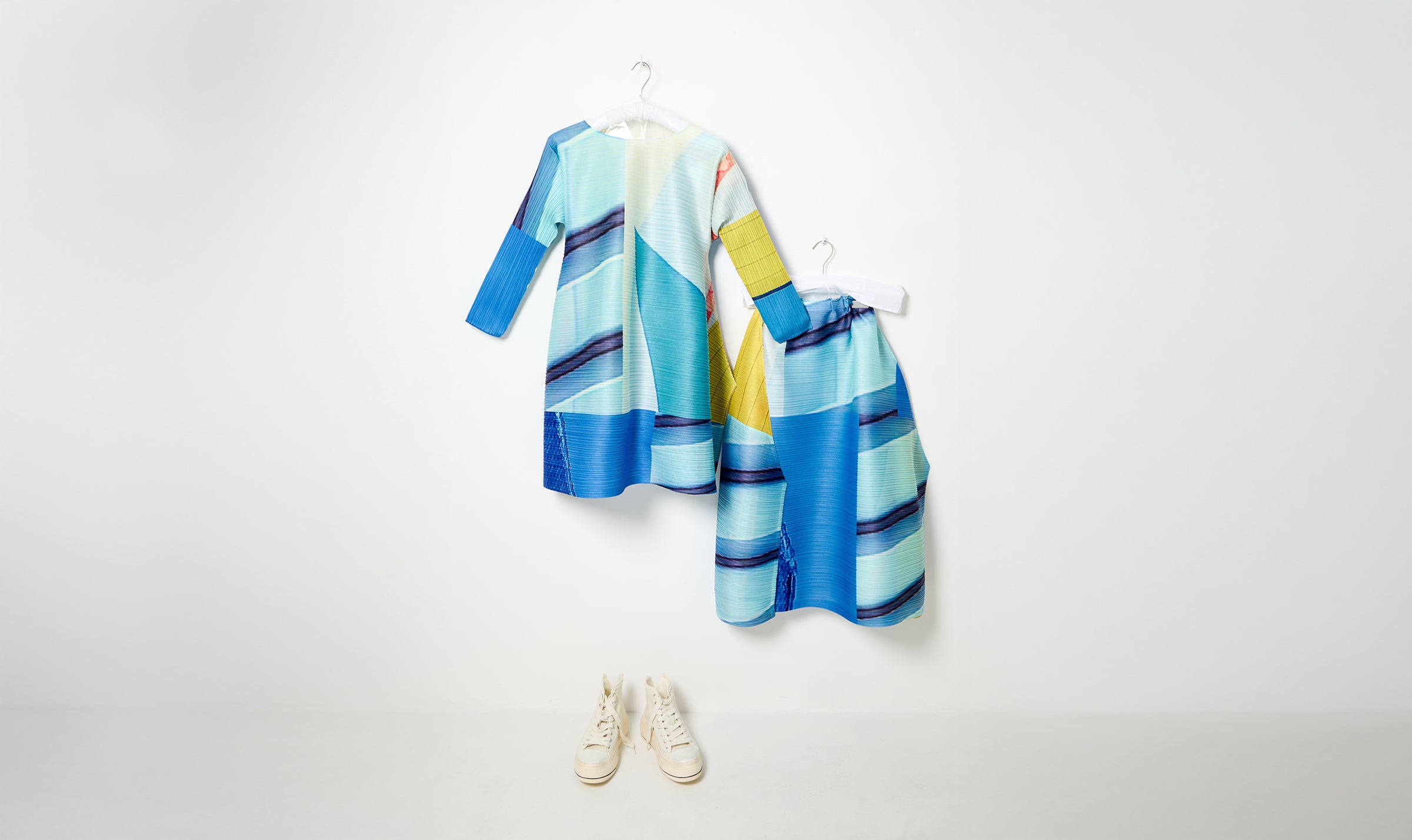 size 3 look composed by pleated dress and skirt