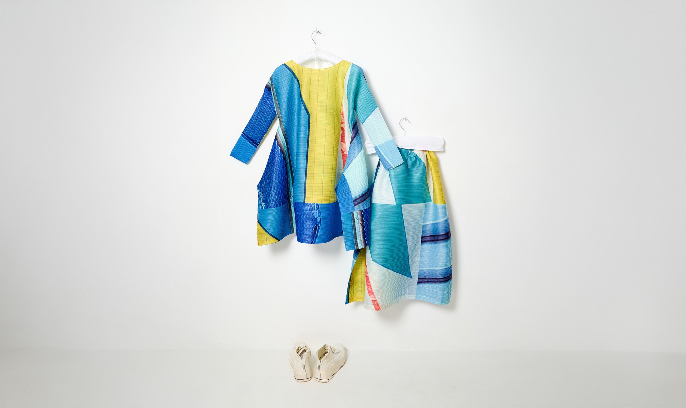 size 3 outfit composed by pleated dress, skirt and shawl