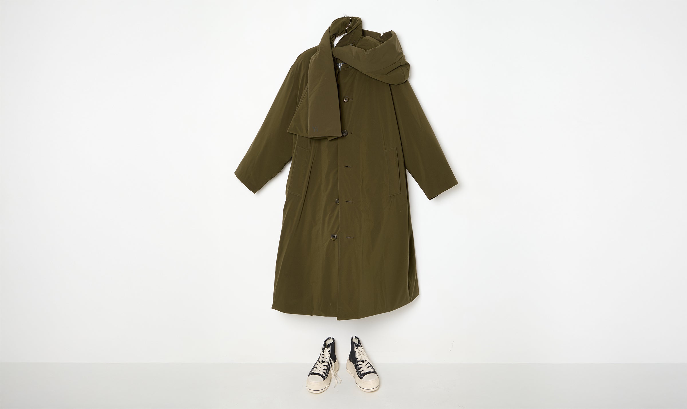 soft long padded khaki trench coat