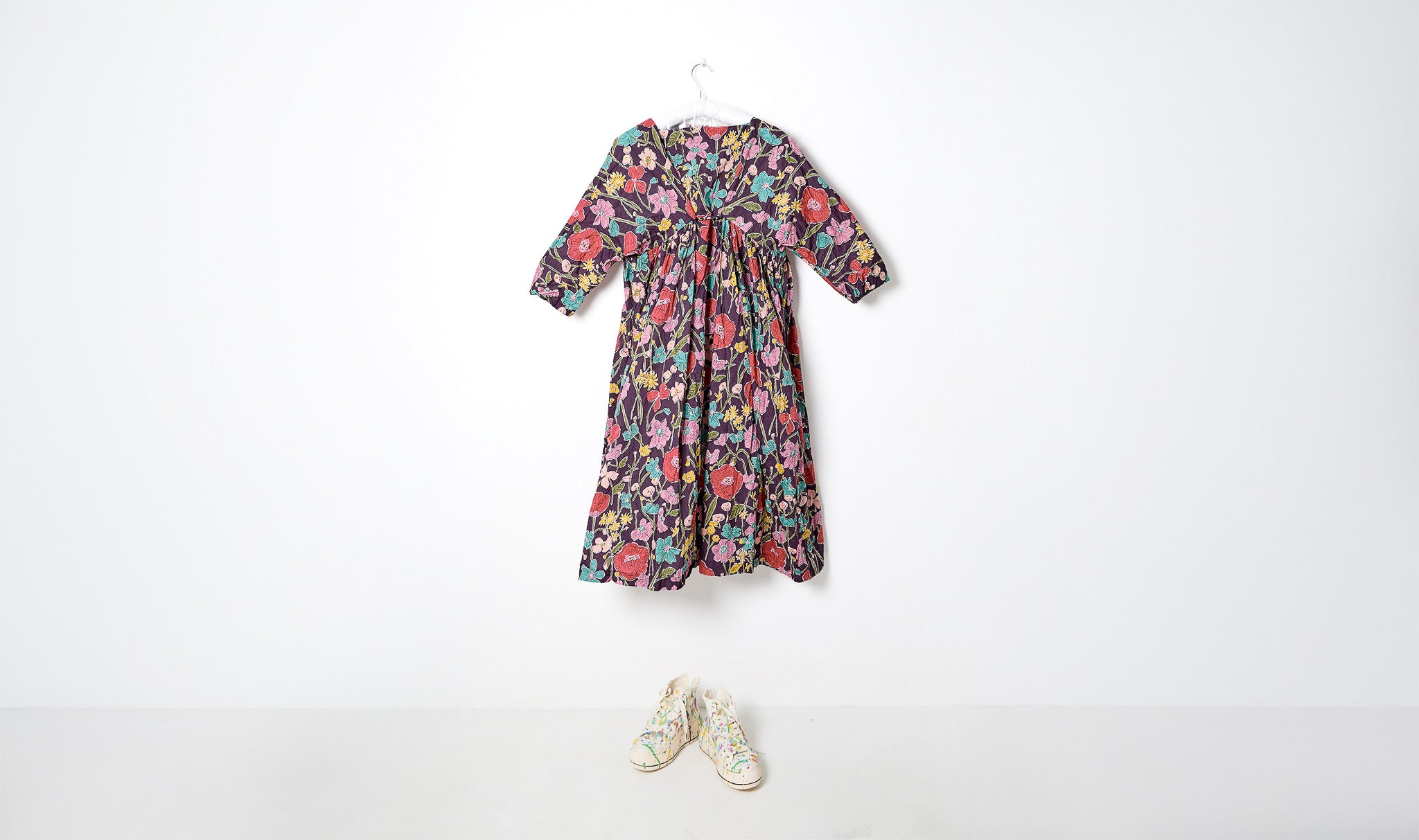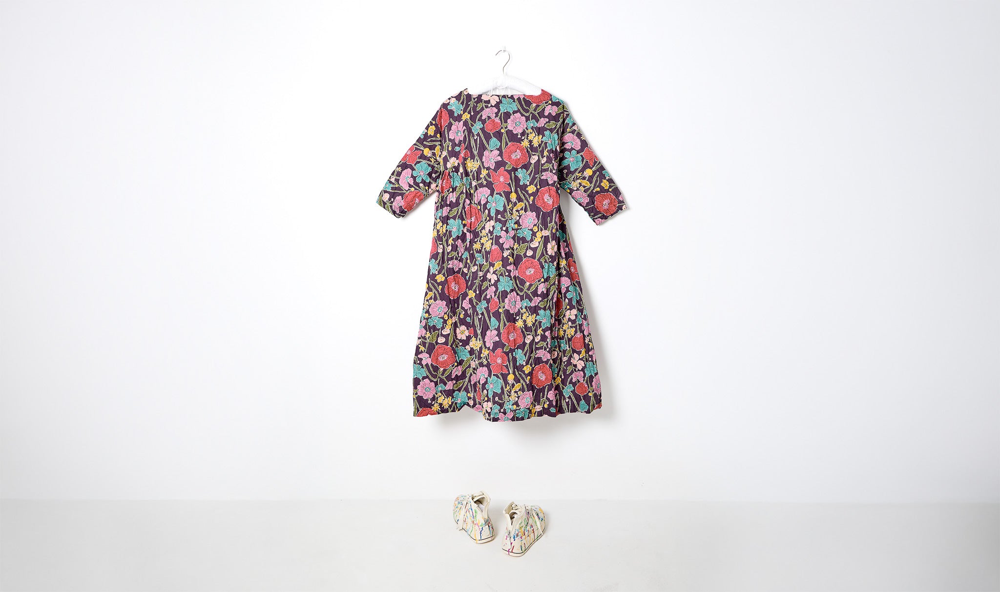 Stylized Floral Print Cotton Dress
