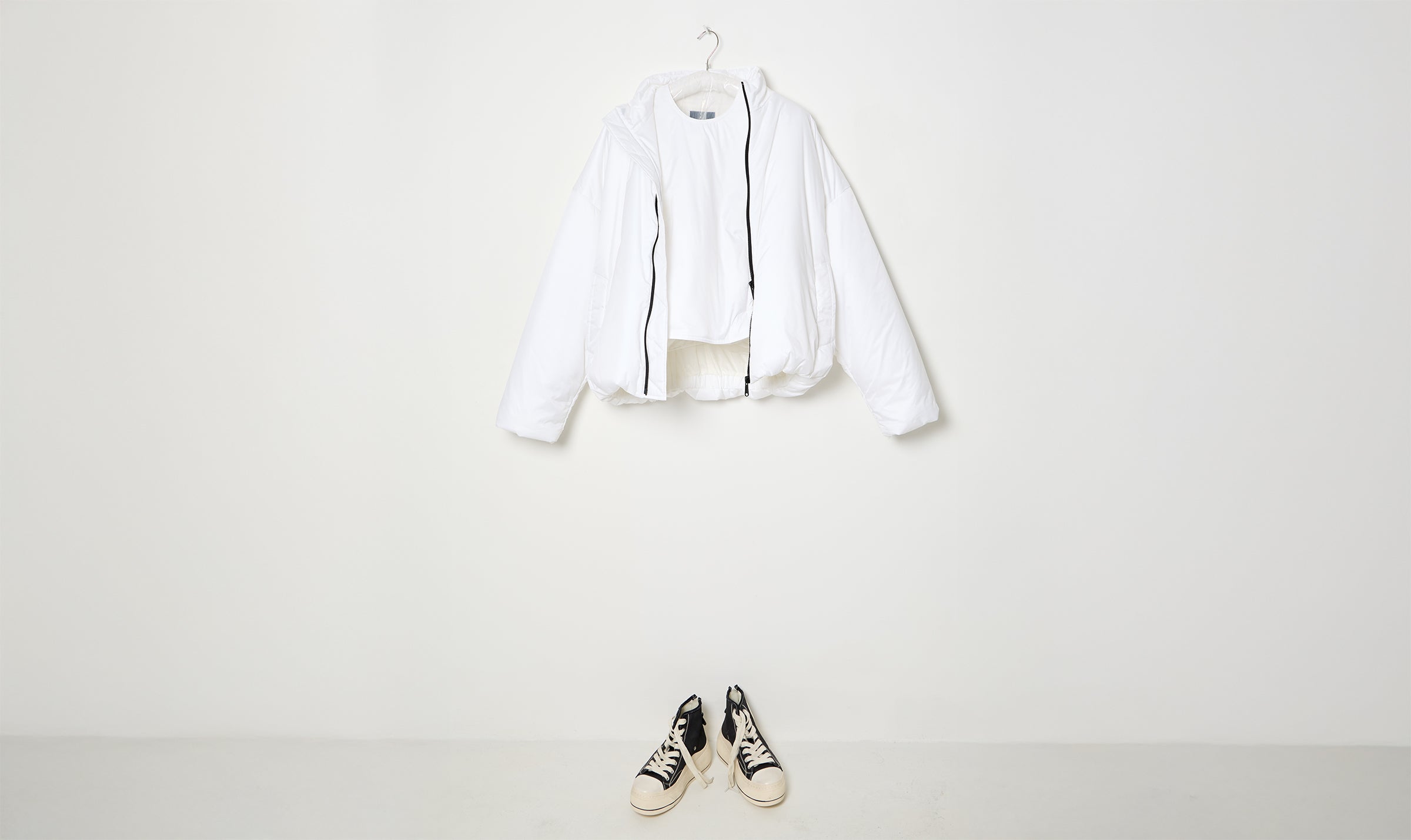 white soft padded nylon jacket and vest look